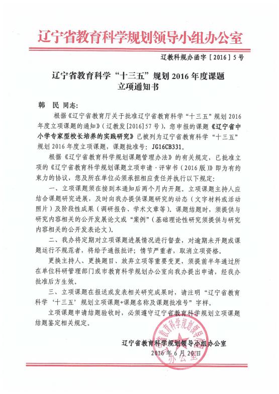2019年12月,由我院韩民副院长牵头主持的辽宁省教育科学规划课题“辽宁省中小学专家型校长培养的实践研究”项目结题并被评为“优秀”研究课题。这是“十三五”以来,我院开展辽宁省中小学专家型校长培养实践研究工作的一个总结性成果。
