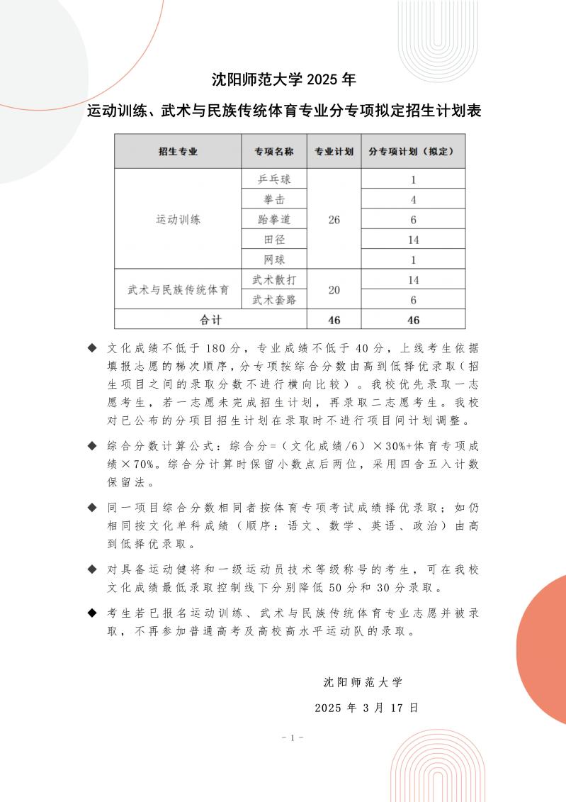 星空XK体育2025年运动训练、武术与民族传统体育专业分专项拟定招生计划表