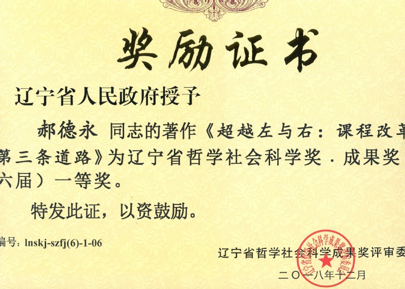 郝德永一等奖证书